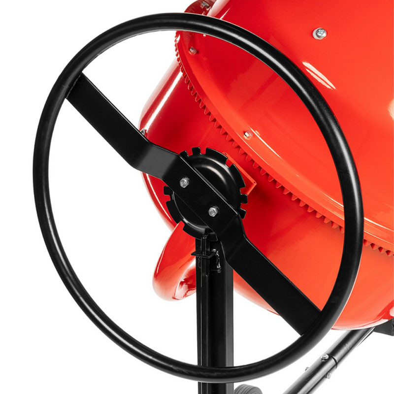 - Könnyű szállíthatóság: a nagyméretű, kétrészes kerekeknek köszönhetően a betonkeverő könnyen mozgatható a munkahelyszínen