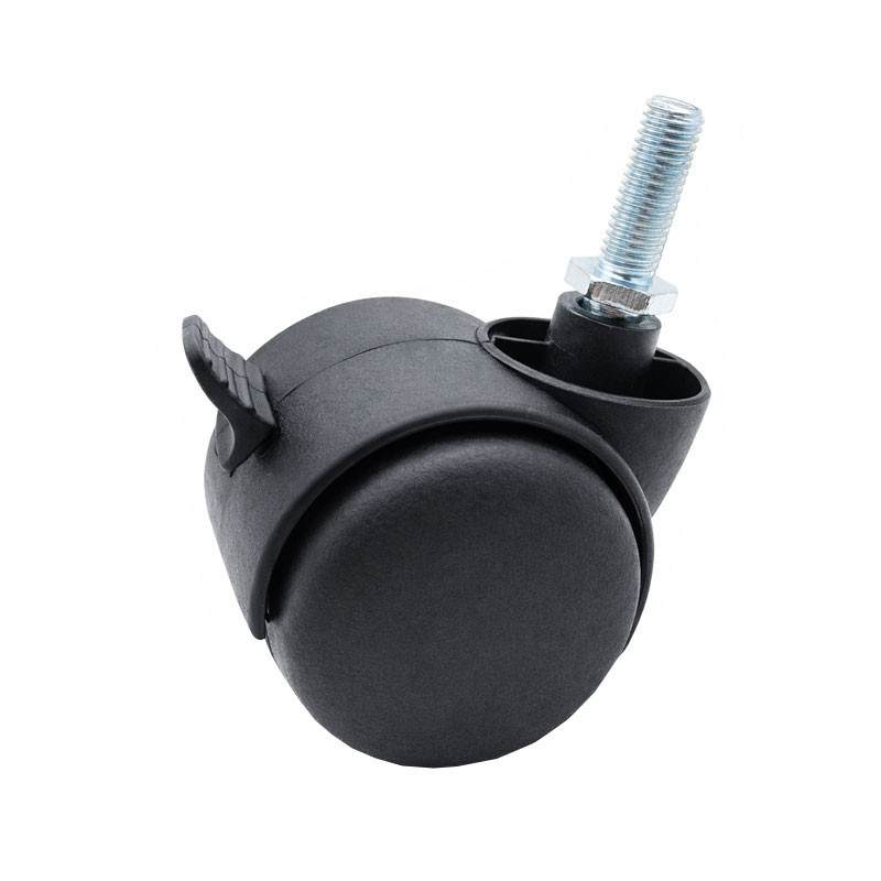 Menetes csavaros, fekete színű, műanyag bútorgörgő fékkel.