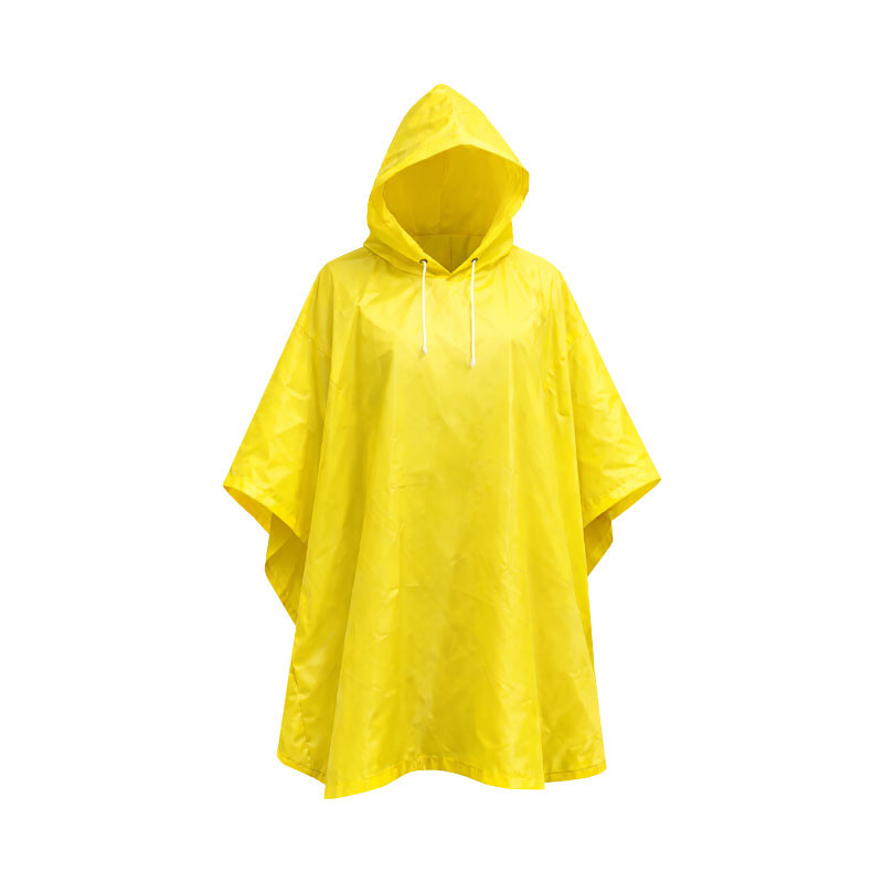Sárga színű, kapucnis eső poncsó.