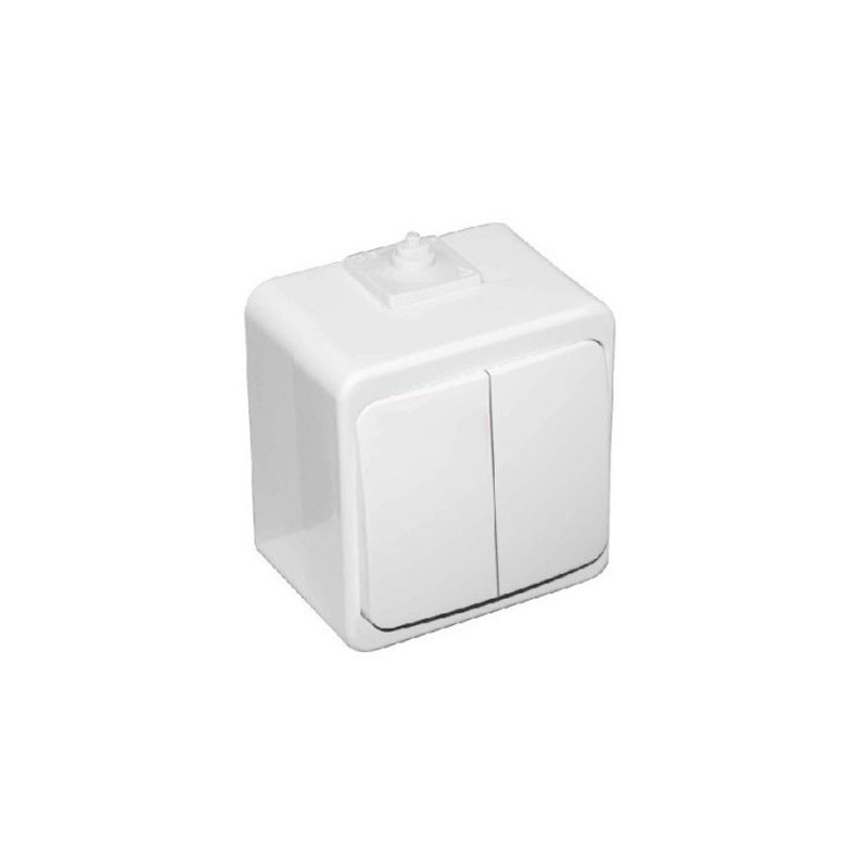 A két kapcsolós kapcsoló, elősegíti a helytakarékosságot, illetve az egyszerűbb használatot. Falon kivüli, kültéri kivitel.