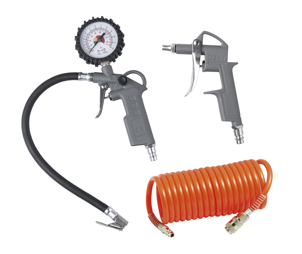 Kompresszor tartozék készlet, amely minden eszközt tartalmaz, ami a munka megkezdéséhez szükséges. A kompresszor rendkívül sokoldalú eszköz, amely számtalan helyzetben hasznos segítséget nyújthat, például autók szereléséhez és karbantartásához, az építőipar területein, illetve az otthoni munkálatok során egyaránt.