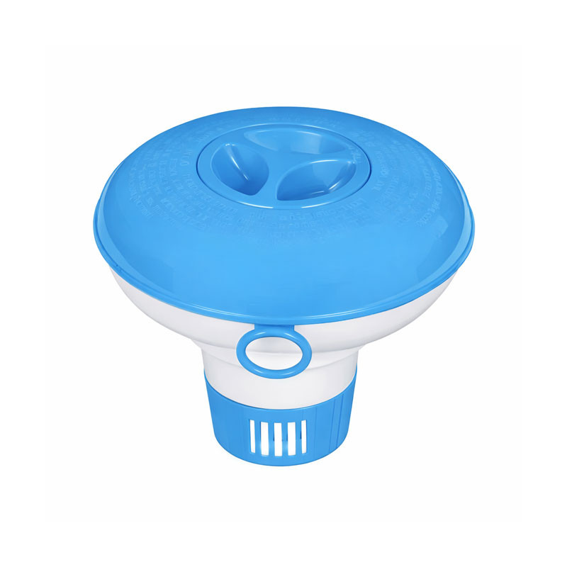Úszó vegyszeradagoló kisebb medencékhez, 2,5cm méretű tablettákhoz. Kiváló minőségű műanyag anyagokból készült, beltéri és kültéri használatra is alkalmas.